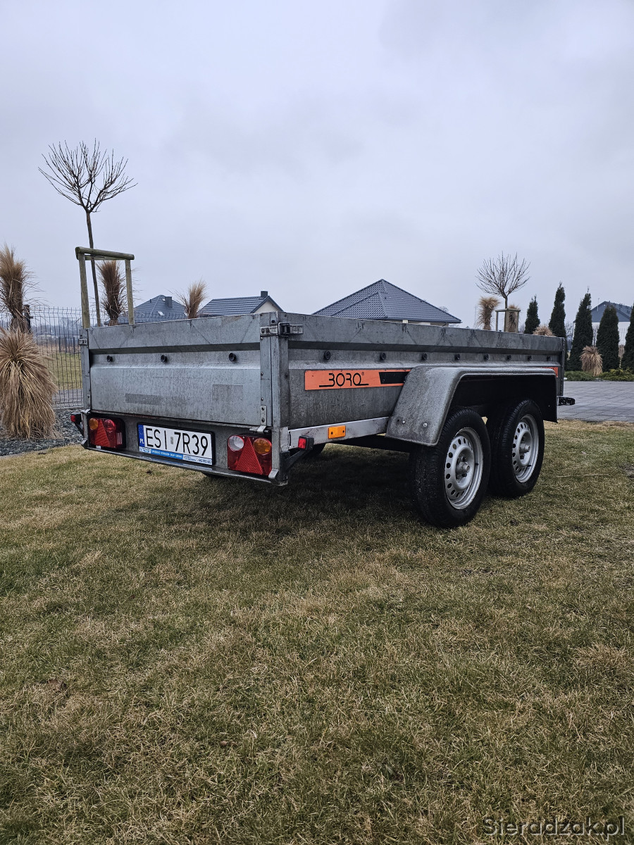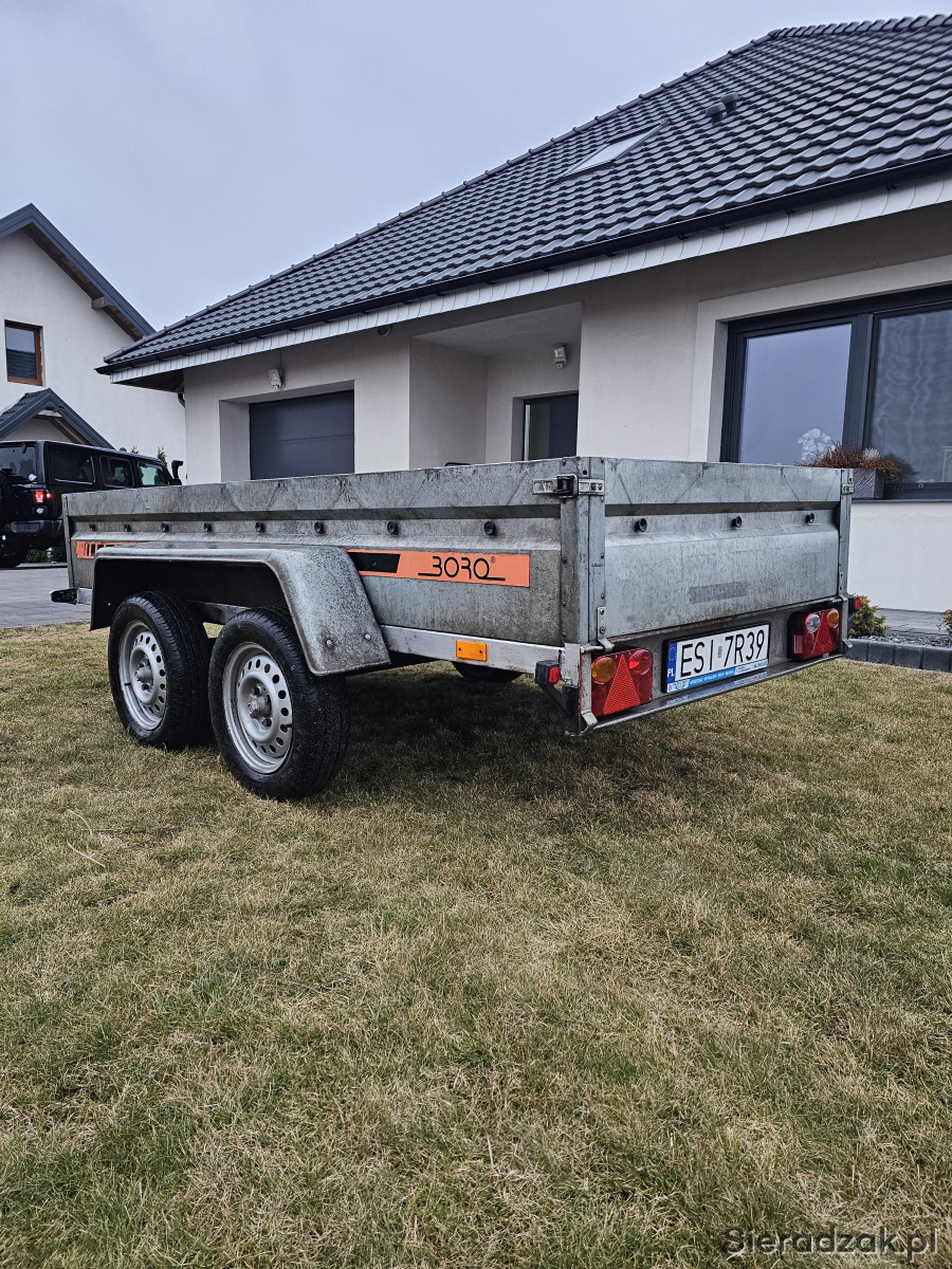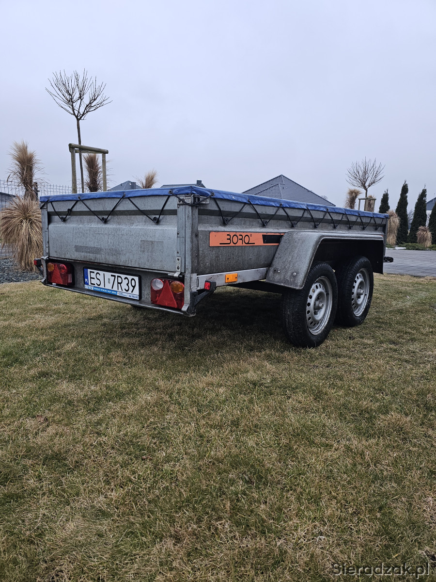 Sprzedam przyczepkę lekką BORO model B2 z 2013r. Przyczepka jest sprawna, bardzo solidna, posiada ślady użytkowania widoczne na zdjęciach.Dodatkowo jest wyposażona w plandekę oraz przednie i tyle lampy obrysowe.