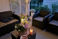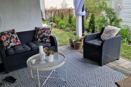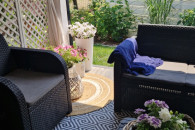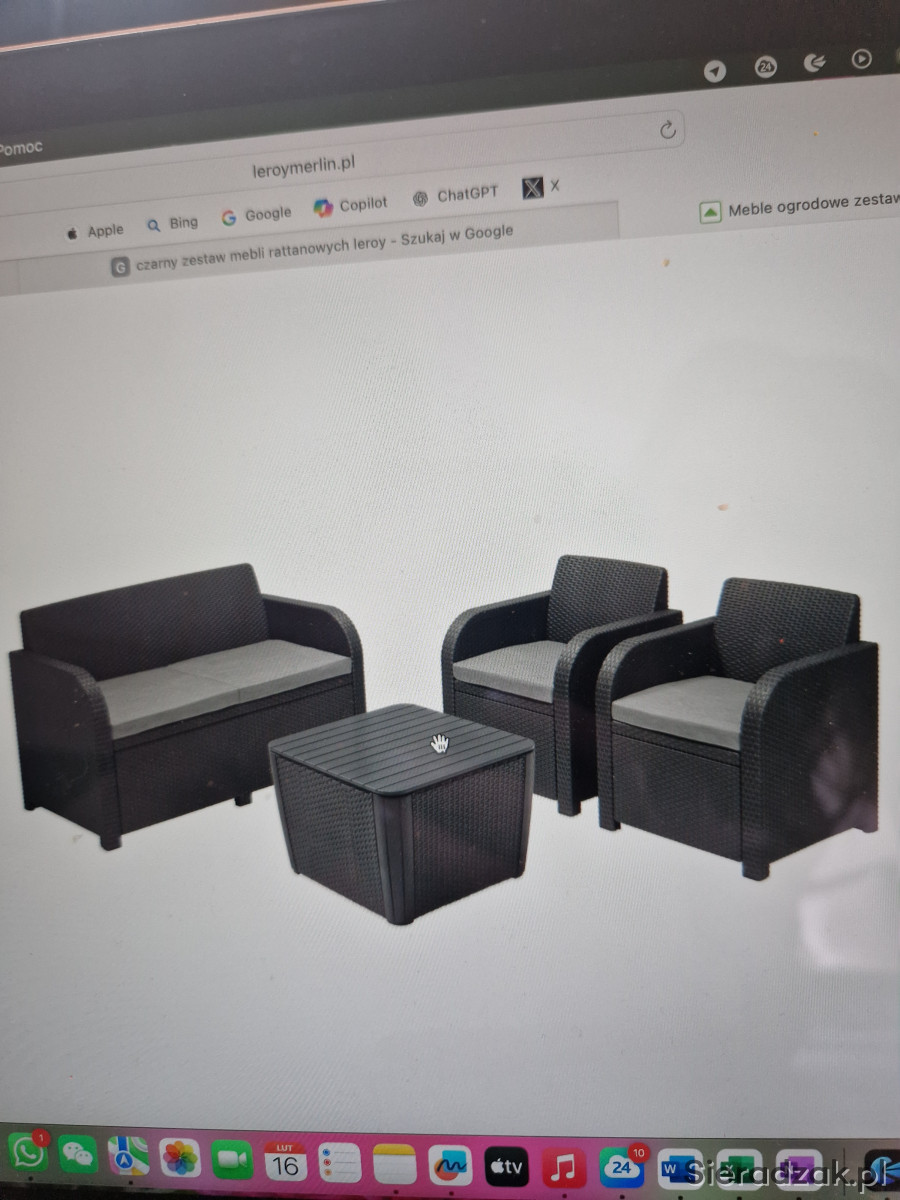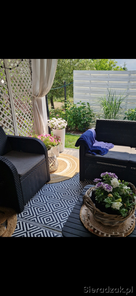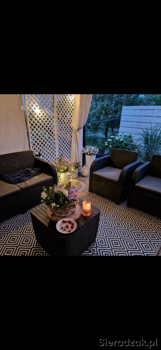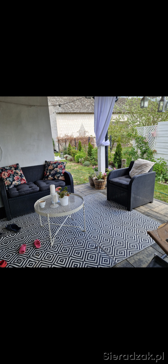 Sprzedam zestaw mebli ogrodowych. W skład zestawu wchodzą: kanapa 2-os. + 1 fotel + czarny stolik (widoczny na 3 ,4 i 5 zdjeciu).