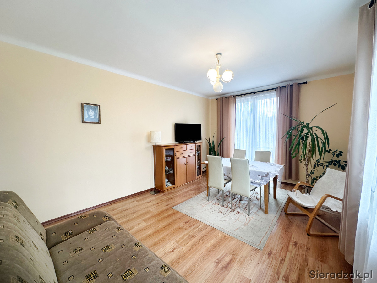 Na zewnątrz czeka park, plac zabaw, zieleń i przestrzeń, a kilka kroków dalej sklep i przystanek. Do Sieradza dojedziesz szybko, ale wracając – wrócisz do ciszy.