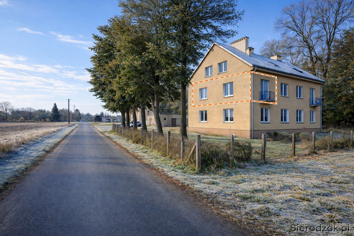 Na sprzedaż ustawne, jasne mieszkanie o powierzchni 47,7 m², położone na pierwszym piętrze w kameralnym, dwupiętrowym bloku w miejscowości Kościerzyn (gmina Wróblew, powiat sieradzki).