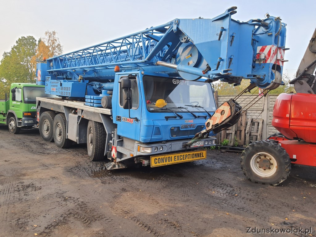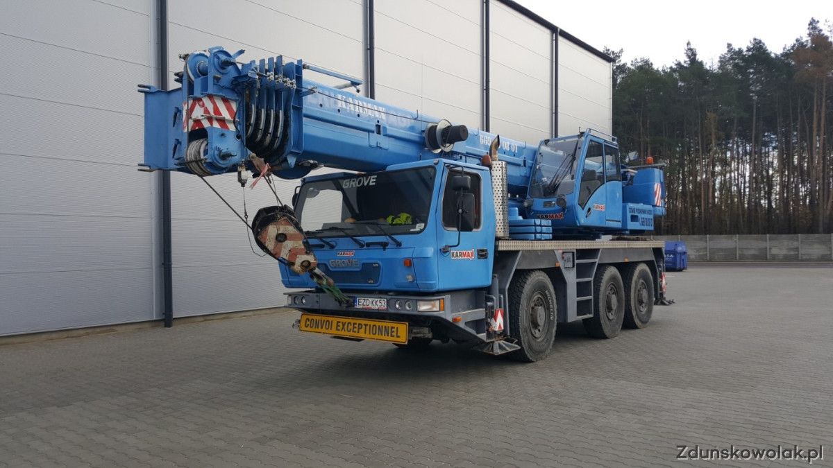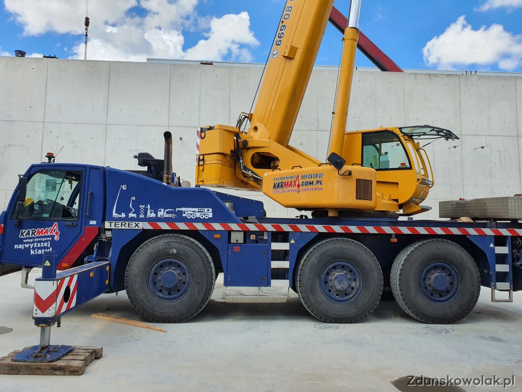 Świadczymy usługi dźwigowe żurawiami samojezdnymi o maksymalnych udźwigach 80 ton renomowanych producentów takich jak: GROVE I TEREX