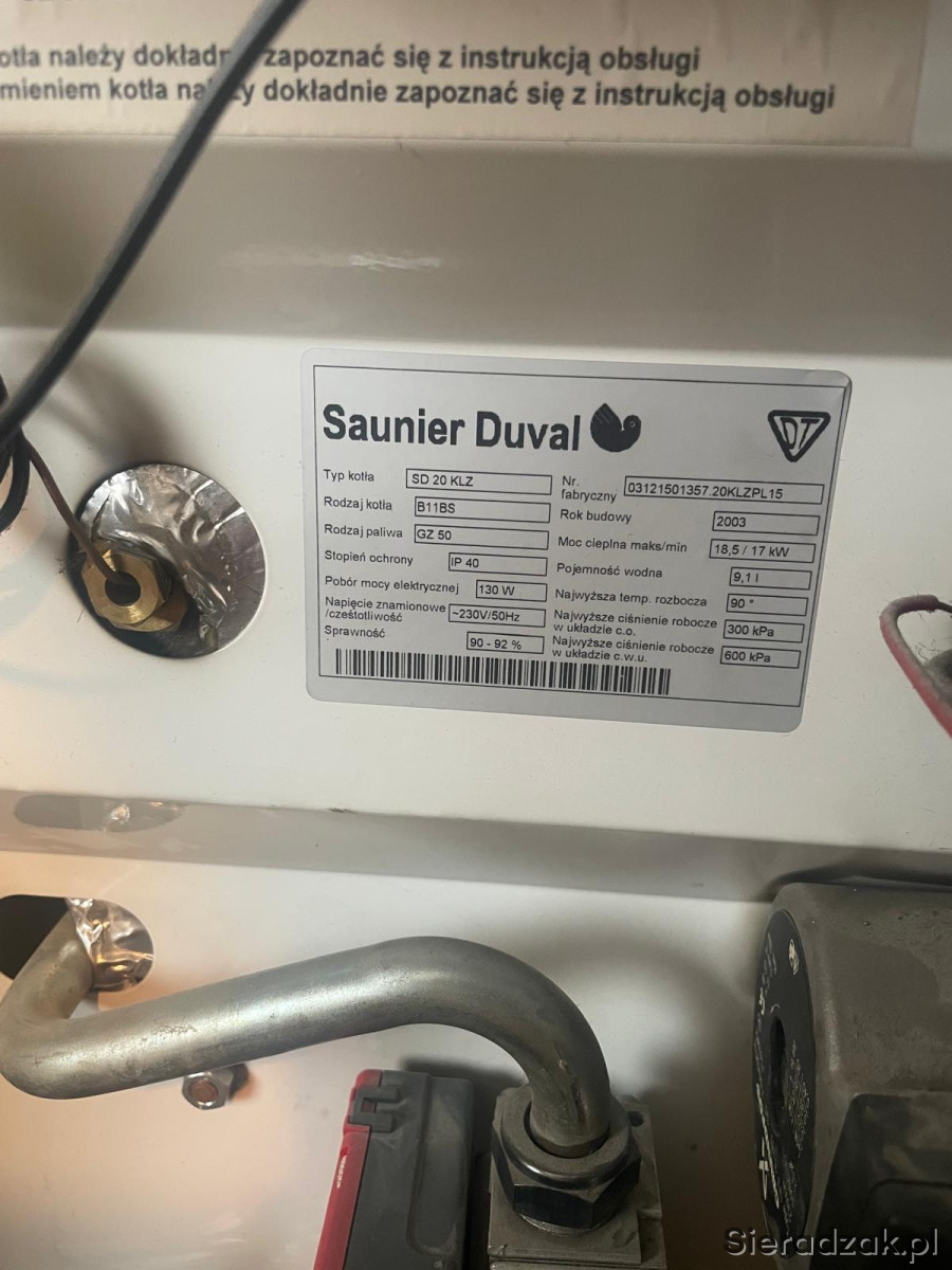 Używany piec gazowy na gaz ziemny Saunier Duval SD20klz. Urządzenie w dobrym stanie technicznym, gotowe do użytku. Solidna konstrukcja zapewnia długą żywotność. Warto rozważyć ten model, jeśli szukasz niezawodnego pieca w atrakcyjnej cenie. Kocioł posiada bufor ciepłej wody użytkowej 90l. Kocioł dopiero co rozpięty z instalacji.
