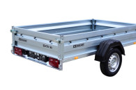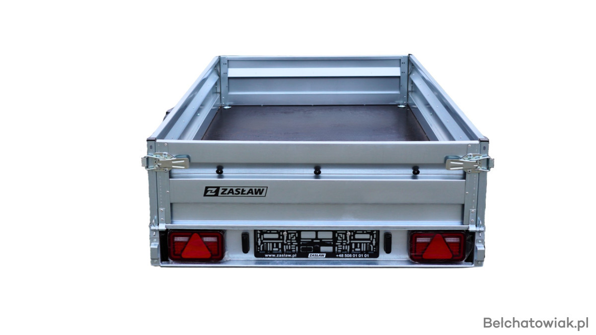 Przyczepy towarowe Zasław to nowoczesna linia przyczep samochodowych wykonanych z najlepszych dostępnych na polskim rynku materiałów. Produkty tej kategorii charakteryzuje m.in.: nowoczesny design burt walcowanych na zimno, wytrzymałe zaczepy burtowe z kompensacją oraz dyszel prowadzony od osi dla większej wytrzymałości konstrukcji. Wszystkie elementy ram cynkowane są ogniowo, co gwarantuje ich trwałość i dużą odporność na korozję. Model 265SU posiada dodatkowo: oś o DMC 750kg, uchylną skrzynię i otwieraną przednią burtę oraz system szybkiego demontażu burt. Wyposażony jest także w: koło podporowe z obejmą oraz uchwyty mocujące towar jak również ramkę tablicy rejestracyjnej.