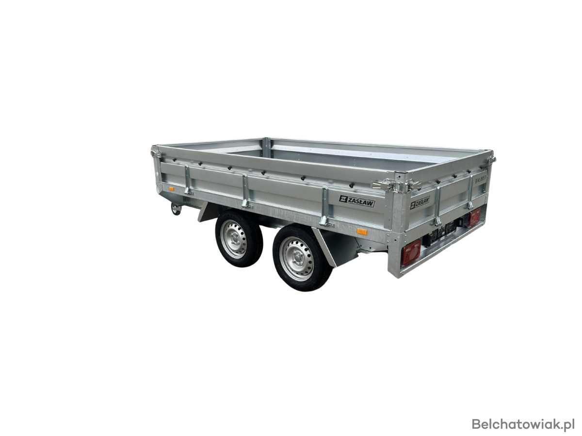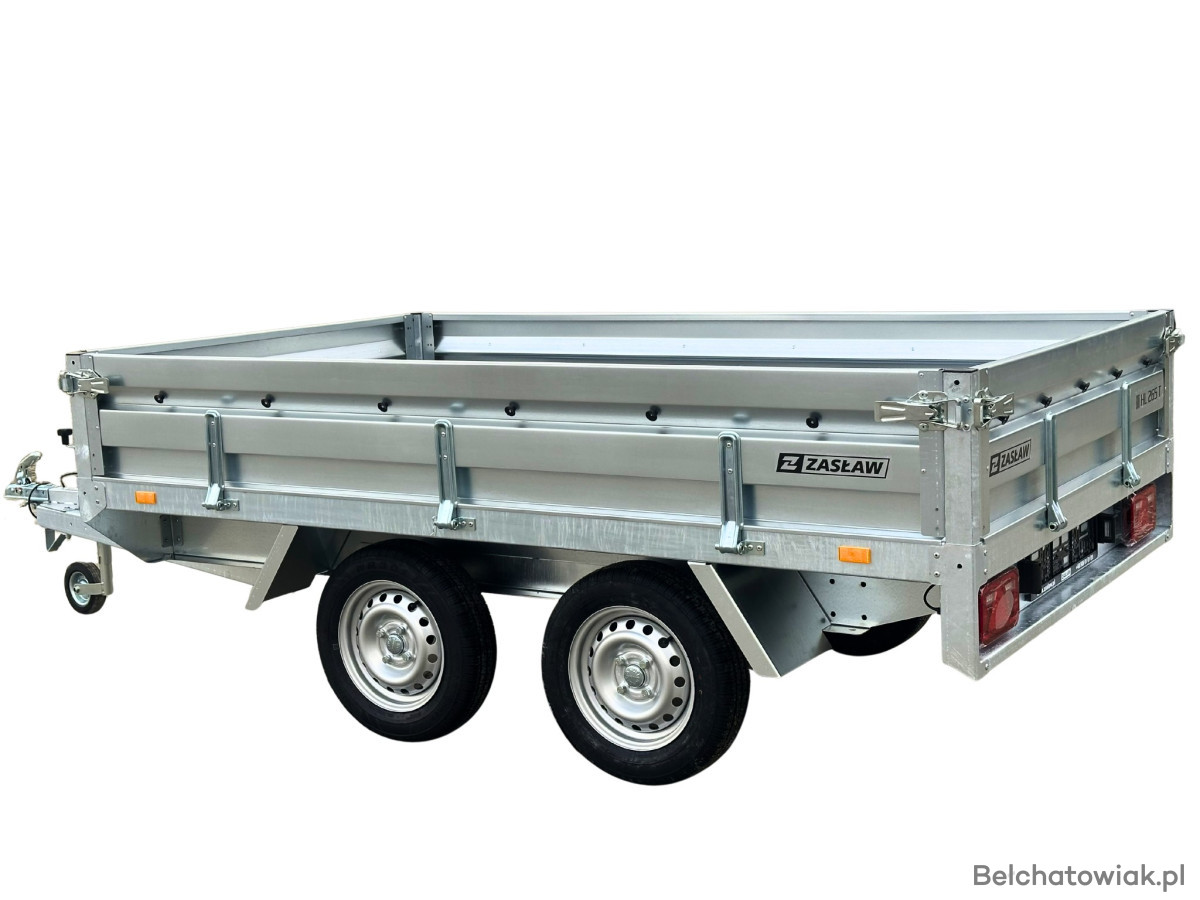 Przyczepy towarowe Zasław to nowoczesna linia przyczep samochodowych wykonanych z najlepszych dostępnych na polskim rynku materiałów. Produkty tej kategorii charakteryzuje m.in.: nowoczesny design burt walcowanych na zimno, wytrzymałe zaczepy burtowe z kompensacją oraz dyszel prowadzony od osi (o DMC 750kg) dla większej wytrzymałości konstrukcji. Przyczepy towarowe Zasław w standardzie wyposażono w instalację elektryczną. Wszystkie elementy ram cynkowane są ogniowo, co gwarantuje ich trwałość i dużą odporność na korozję. Model HL265T posiada dodatkowo otwieraną przednią burtę oraz system szybkiego demontażu burt. Wyposażony jest także w: koło podporowe z obejmą, rolki mocujące plandekę oraz uchwyty mocujące towar i ramkę tablicy rejestracyjnej.