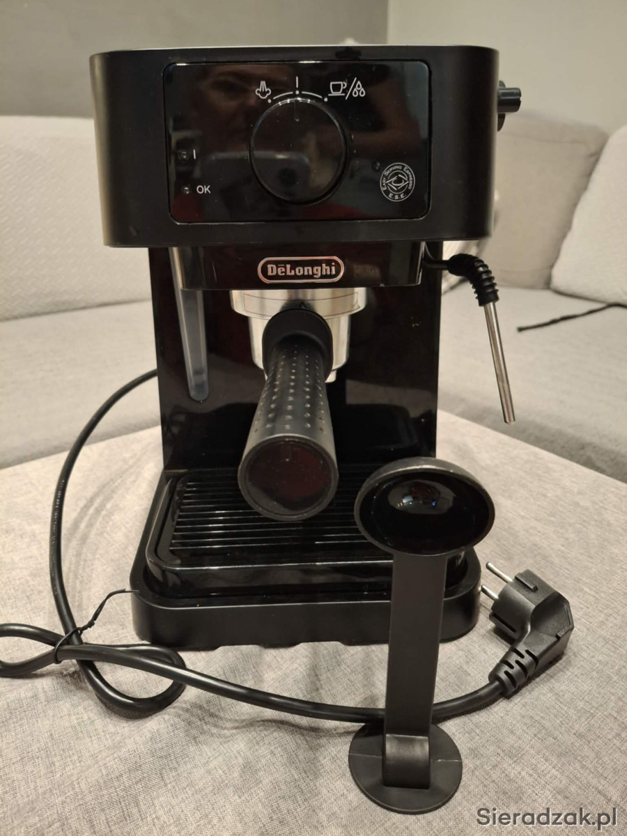 Sprzedam De’Longhi Stilosa EC235.BK – używany kilka miesięcy, działa bez zarzutu, lekko nosi ślady użytkowania. W zestawie dystrybutor, dwa tampy, pierścień do portafiltra i mata do tampowania – wszystko gotowe do domowego espresso. Brak oryginalnego opakowania.
