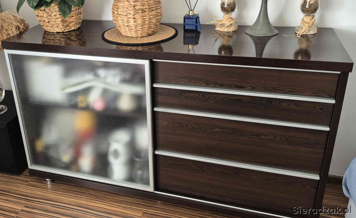 Komoda (szklane drzwi przesuwane + 4 szuflady) - szer.: 152 cm, wys.: 89 cm, głębokość: 47 cm