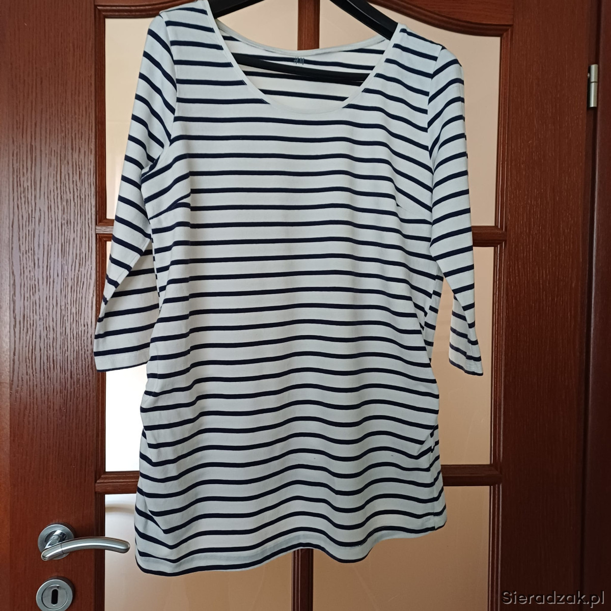 Bluzka biała w granatowe paski.