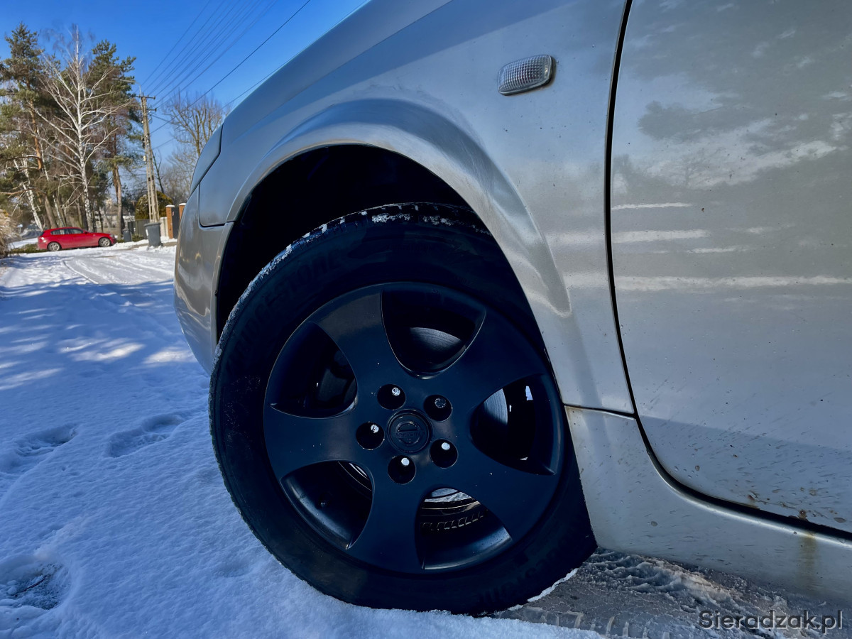Nissan stoi na oryginalnych aluminiowych felgach 16 opony są w dobrym stanie.