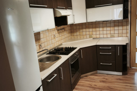 Kuchnia w pełni wyposażona w lodówkę, zmywarkę w zabudowie, piekarnik oraz płyta gazowa