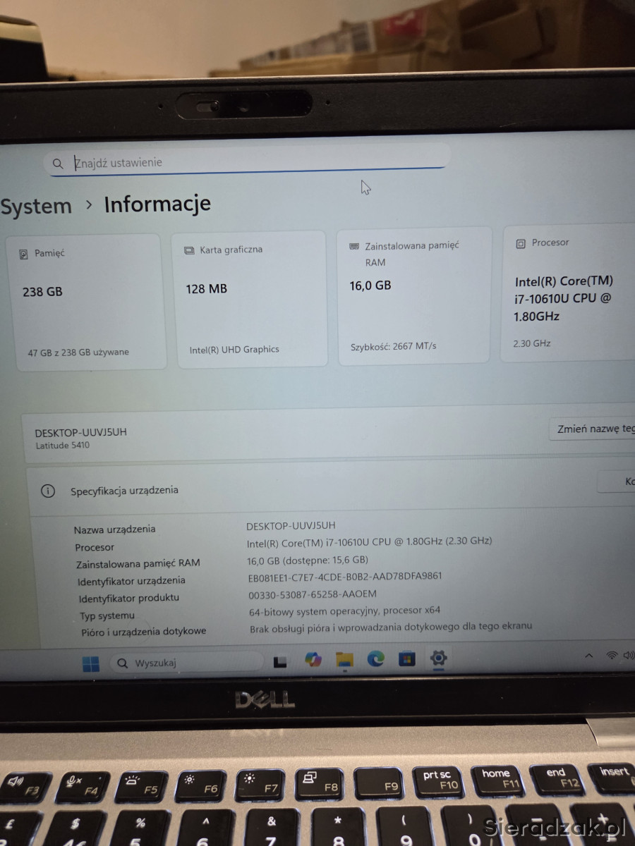 Na sprzedaż laptop premium Dell Latitude 5410, jest to świeży oraz szybki sprzęt ponieważ posiada procesor i7-10 generacji, 16GB Ram DDR4 oraz 256GB dysk SSD M2 Nvme, dodatkowym atutem jest podświetlana klawiatura .