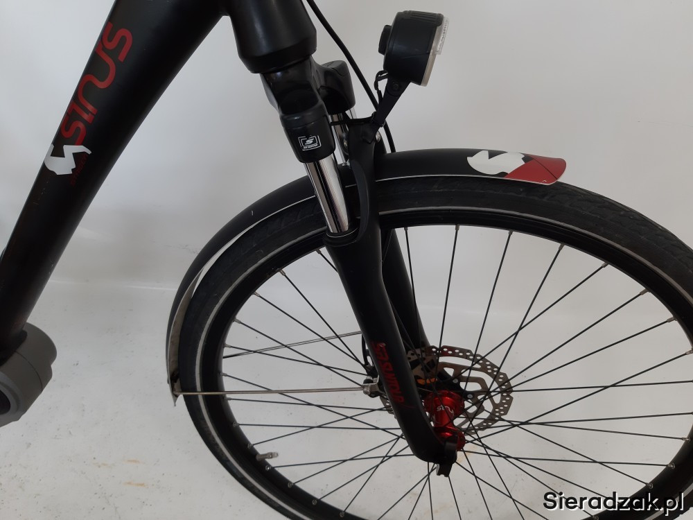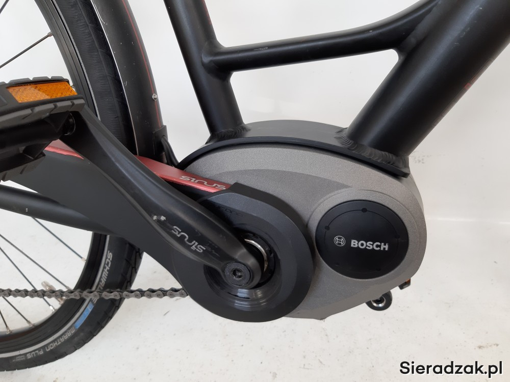 system wspomagania BOSCH 250W,36V,4 stopnie wspomagania:eco,tour,sport,turbo.ładowarka i klucze w komplecie. rama aluminium 21" 54cm,napęd 9-rzędowy shimano deore,manetka shimano deore,hamulce hydrauliczne shimano,amortyzator sr suntour,oświetlenie zasilane z akumulatora,lampa tylna wbudowana w bagażnik,siodełko volare,opony schwalbe.stan techniczny bardzo dobry,wizualnie ślady normalnego użytkowania.