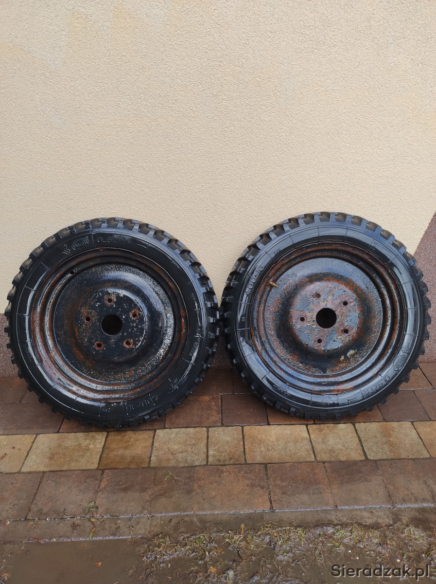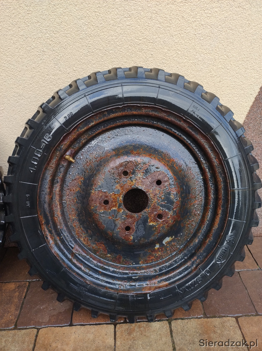 Witam oddam dwa koła rolnicze. Te prawdopodobnie od siewnika poznaniaka. Nie trzymają powietrza. Rozmiar 4.00-16. Rostaw śrub 5x133mm, otwór 72mm. Pozdrawiam