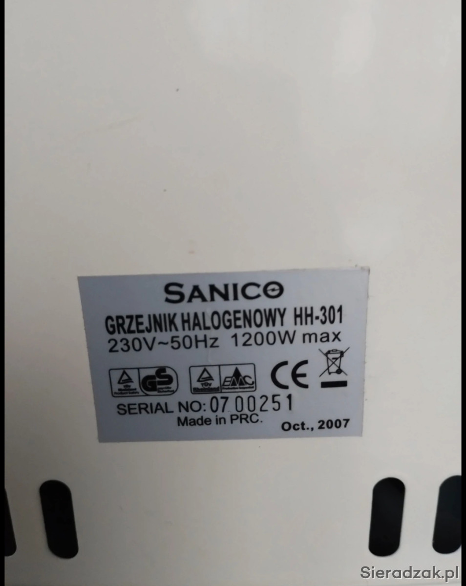 Sprzedam grzejnik halogenowy Sanico HH-301. Moc 1200 W. Trzy poziomy grzania 400 W, 800 W, 1200 W. Zabezpieczenie przed przewróceniem. Metalowa obudowa pozostaje chłodna w dotyku. Energooszczędny, idealny do domu, biura, łazienki i innych pomieszczeń. Sprawny.