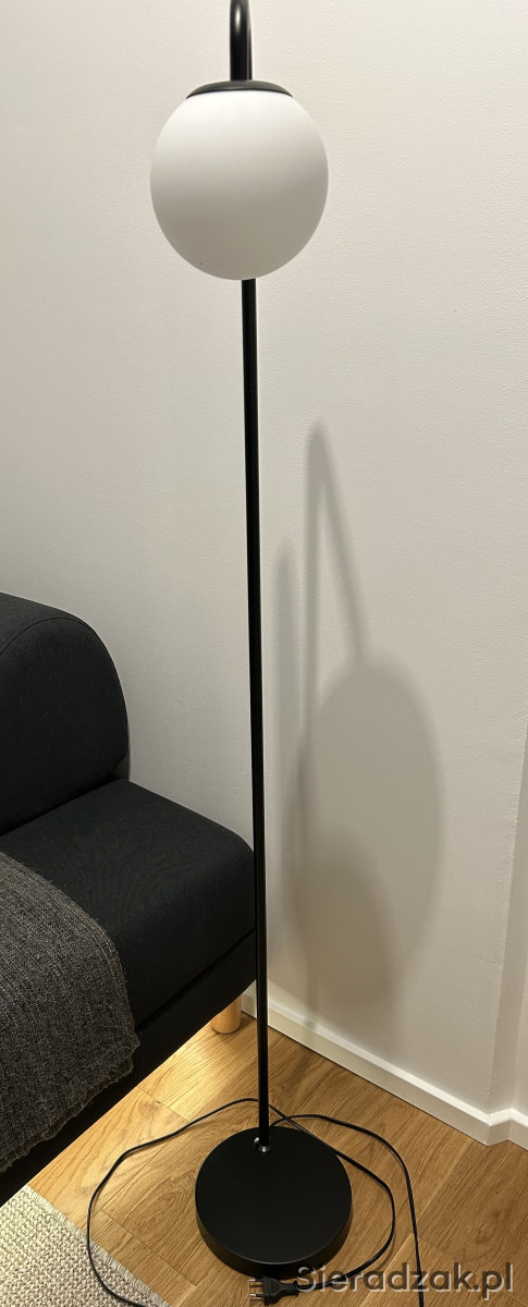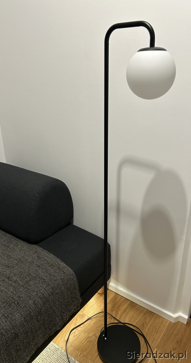Sprzedam lampę podłogową w stanie idealnym. Wymiary: wysokość 146 cm, średnica klosza 15 cm, średnica podstawy 22 cm. Podstawa i rama: stal malowana proszkowo, klosz szklany. Stan idealny.
