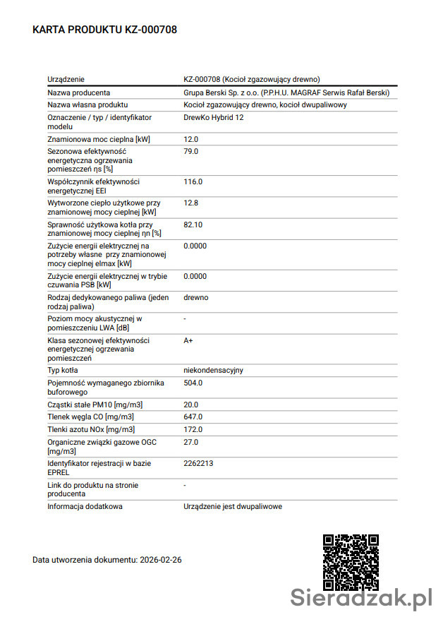 • Klasa energetyczna: A+ (pełna zgodność z normą EN 303-5:2021 oraz Ecodesign)