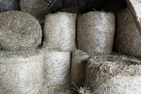 Sprzedam słomę w balach. Zbiór 2025r. 30 sztuk. 120 x 120 owijane siatką. Słoma przechowywana w stodole.