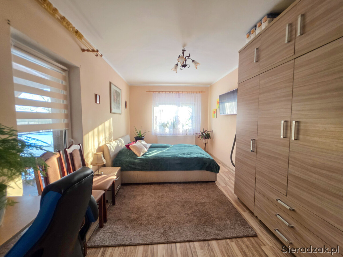 Na sprzedaż dom parterowy o powierzchni 86,5 m², położony na działce o powierzchni 1,2746 ha (głównie klasa gruntu IVa i IVb). Aż 14 arów stanowi ogrodzona część z domem i zabudowaniami – idealnie wydzielona przestrzeń mieszkalna.