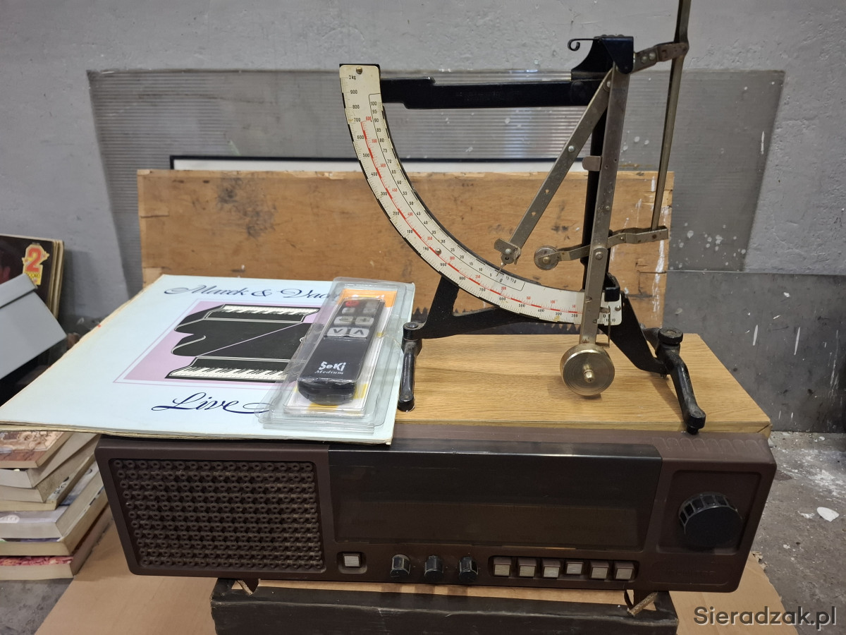 Sprzedam starą Niemiecką wagę pocztową oraz stare radio sprawne nie przestrojone, pilot uniwersalnyi stare Polskie płyty. Cena za całość to 140 zł