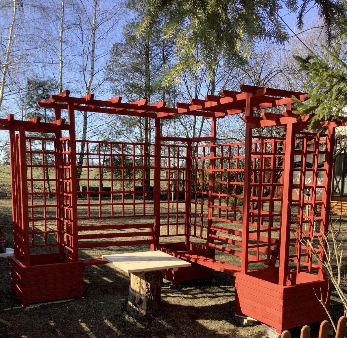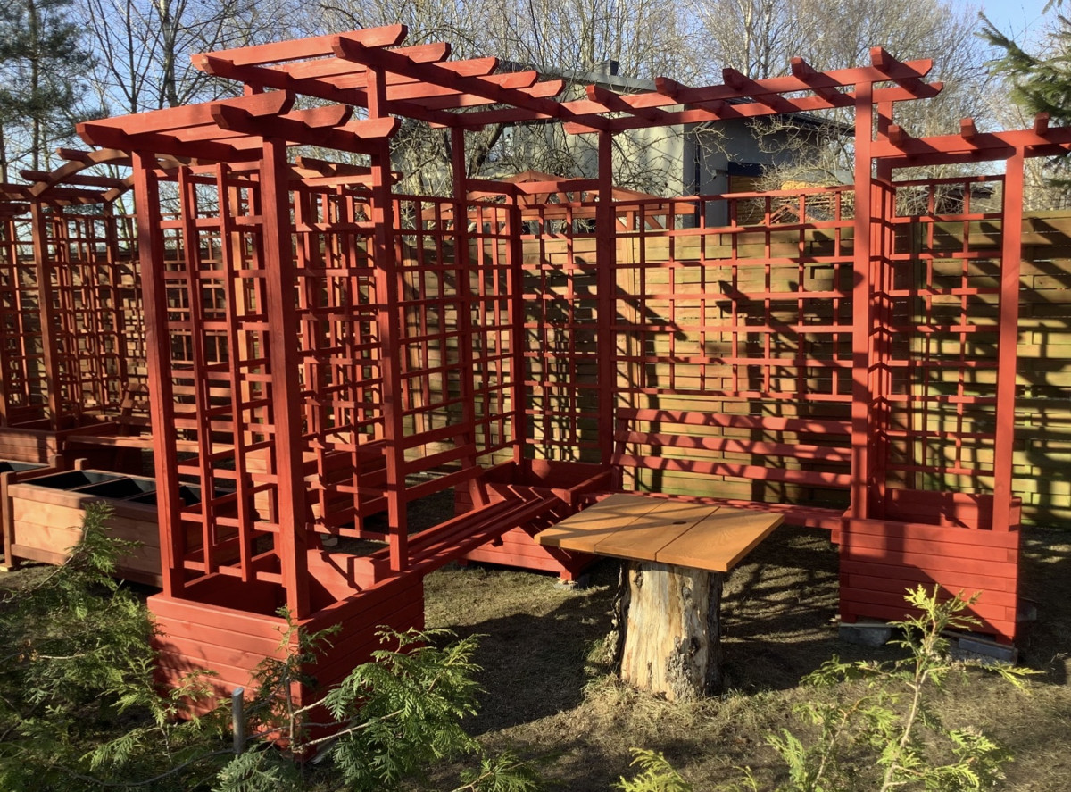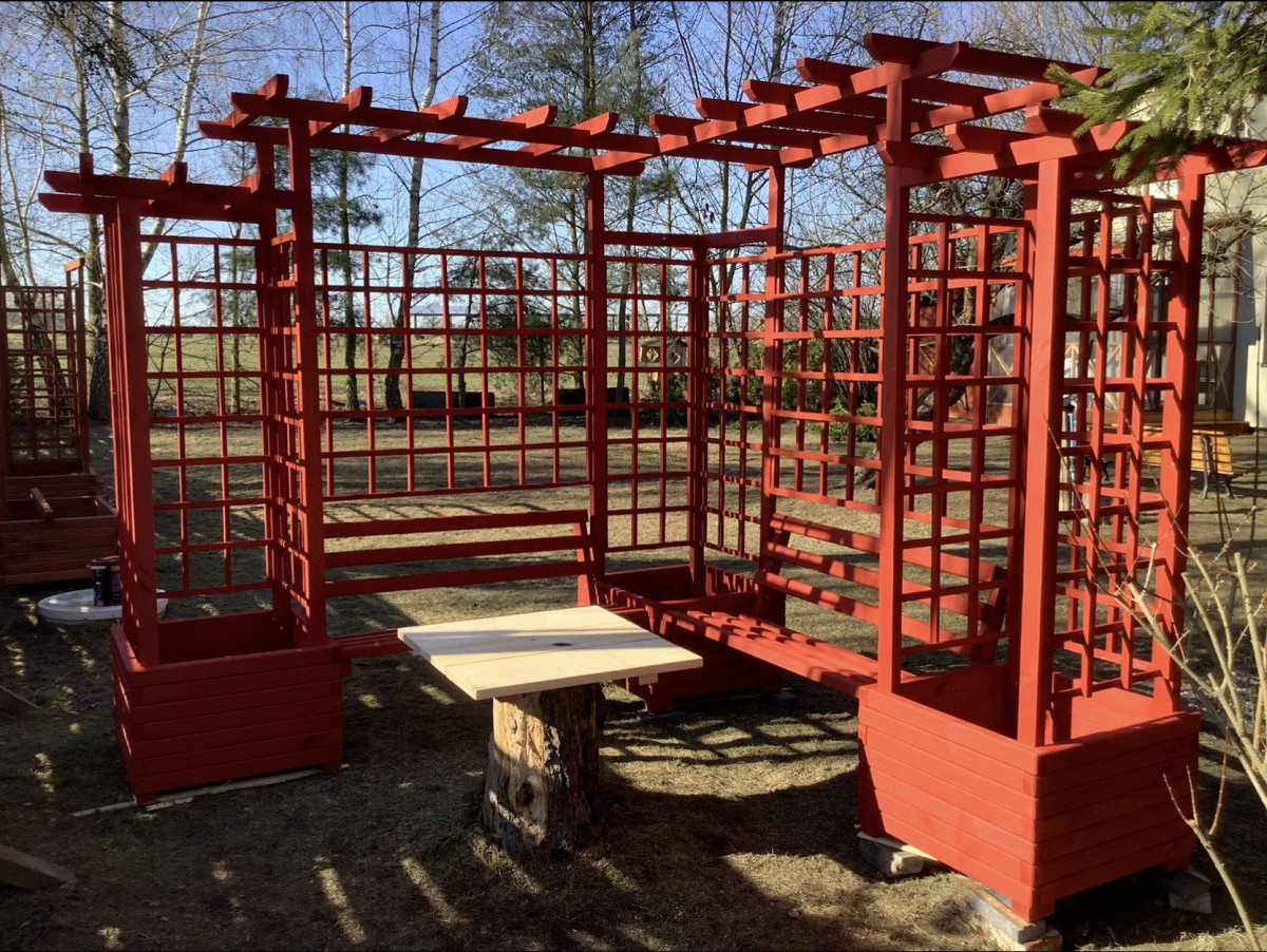 Drewniana Pergola Narożna 270x270 – Impregnat NJORD "Czerwony Domek"