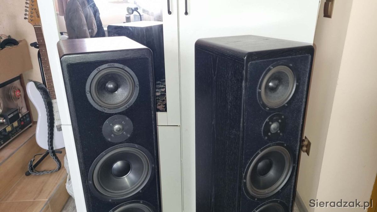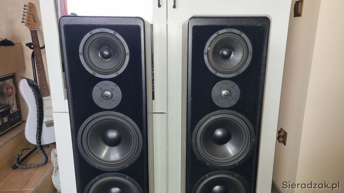W przedmiotowym modelu głośnik średnio tonowy umieszczony jest centralnie na górze dzięki takiej konfiguracji otrzymujemy piękną scenę muzyczną z dynamicznym nisko schodzącym , kontrolowanym basem , wyjątkowo naturalną dla wokali średnicą i kryształowymi , nie męczącymi sopranami,