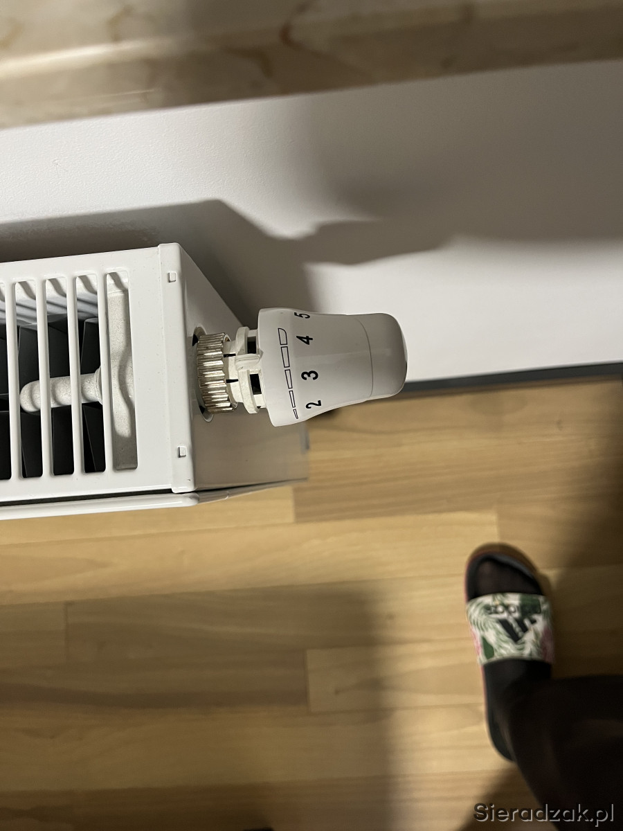 Do grzejnika dołączam termostat (jak na zdjęciu) i ścienne uchwyty mocujące