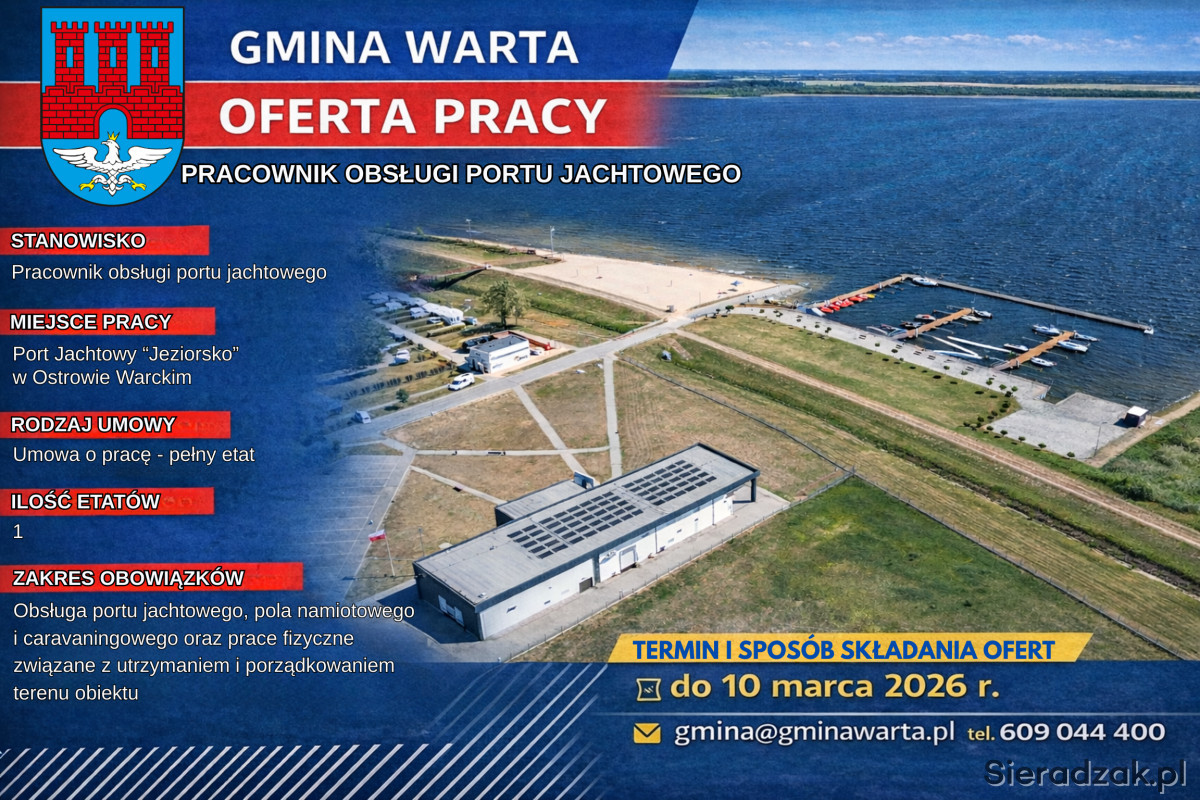 Gmina Warta poszukuje pracownika obsługi do Portu Jachtowego „Jeziorsko” w Ostrowie Warckim.