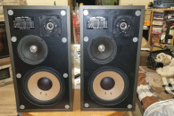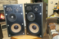 Tieftöner 200mm, Mitteltöner 80mm, Hochtöner 50mm Akai-Ring-Tweeter. Frequenzweiche Übergänge bei 1200/12000Hz. Schalldruck 89db/W/m.
