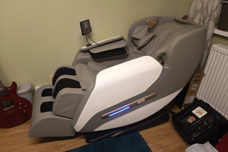 Fotel z dyskretnym oświetleniem i wbudowanymi głośnikami.