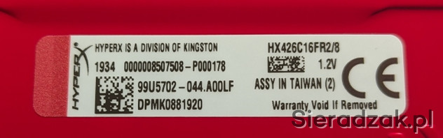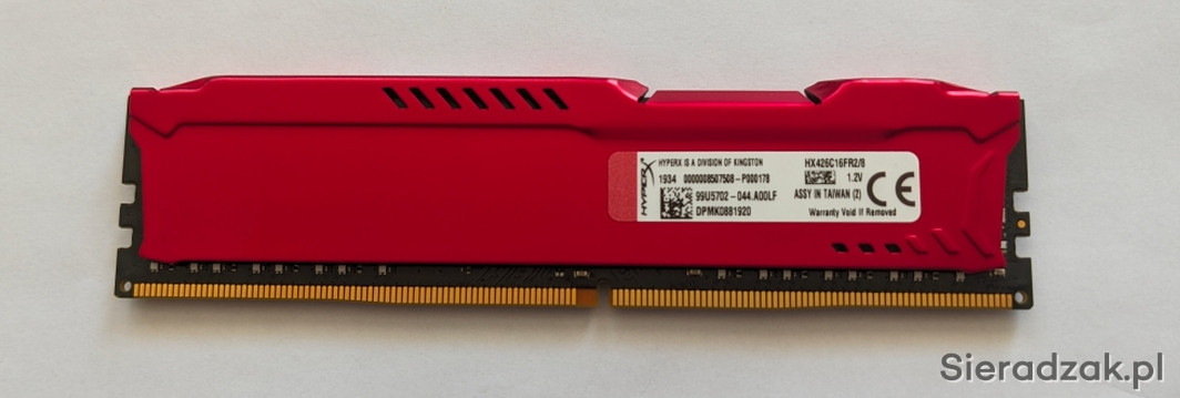 Na sprzedaż posiadam w 100% sprawną kość pamięci 8 GB DDR4 2666 MHz firmy KINGSTON HyperX Fury.