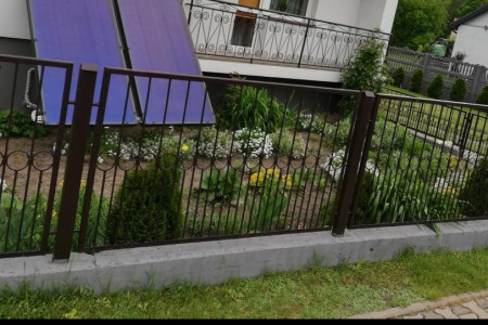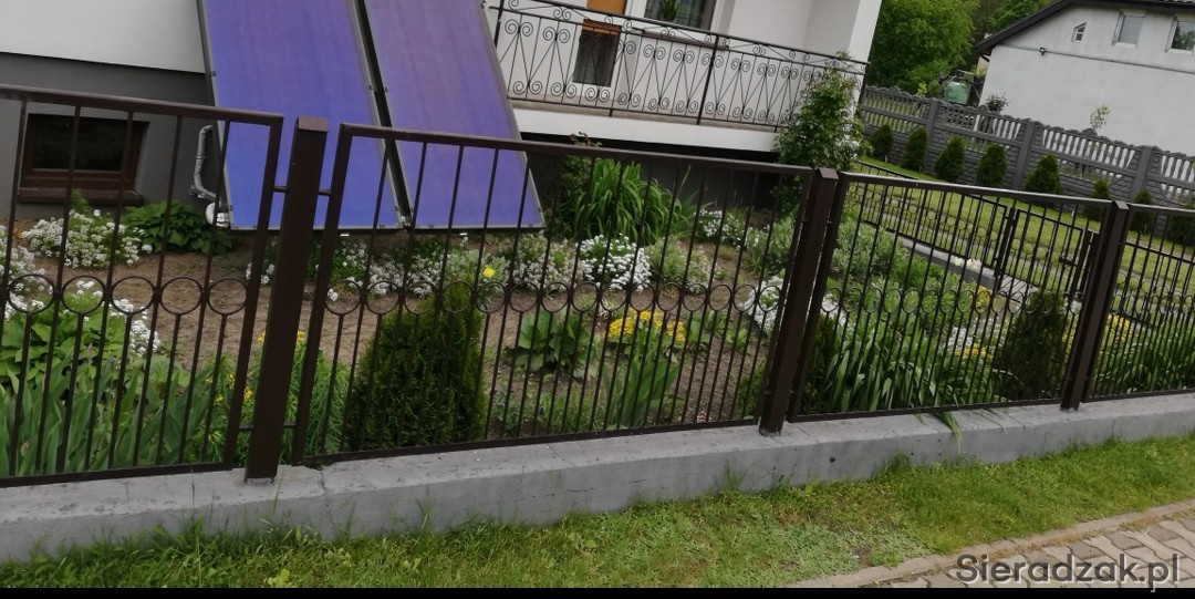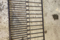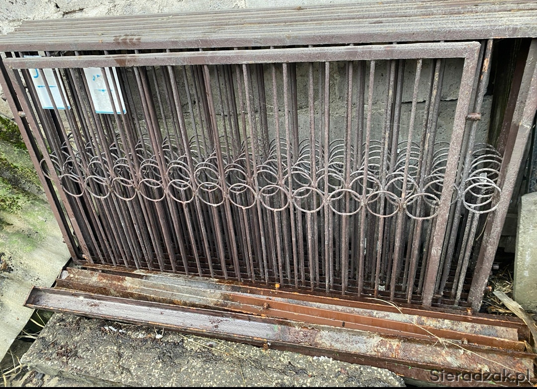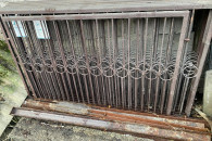 Używany, płot z metalowymi elementami dekoracyjnymi. Może być wykorzystany jako element ogrodzenia lub dekoracji.