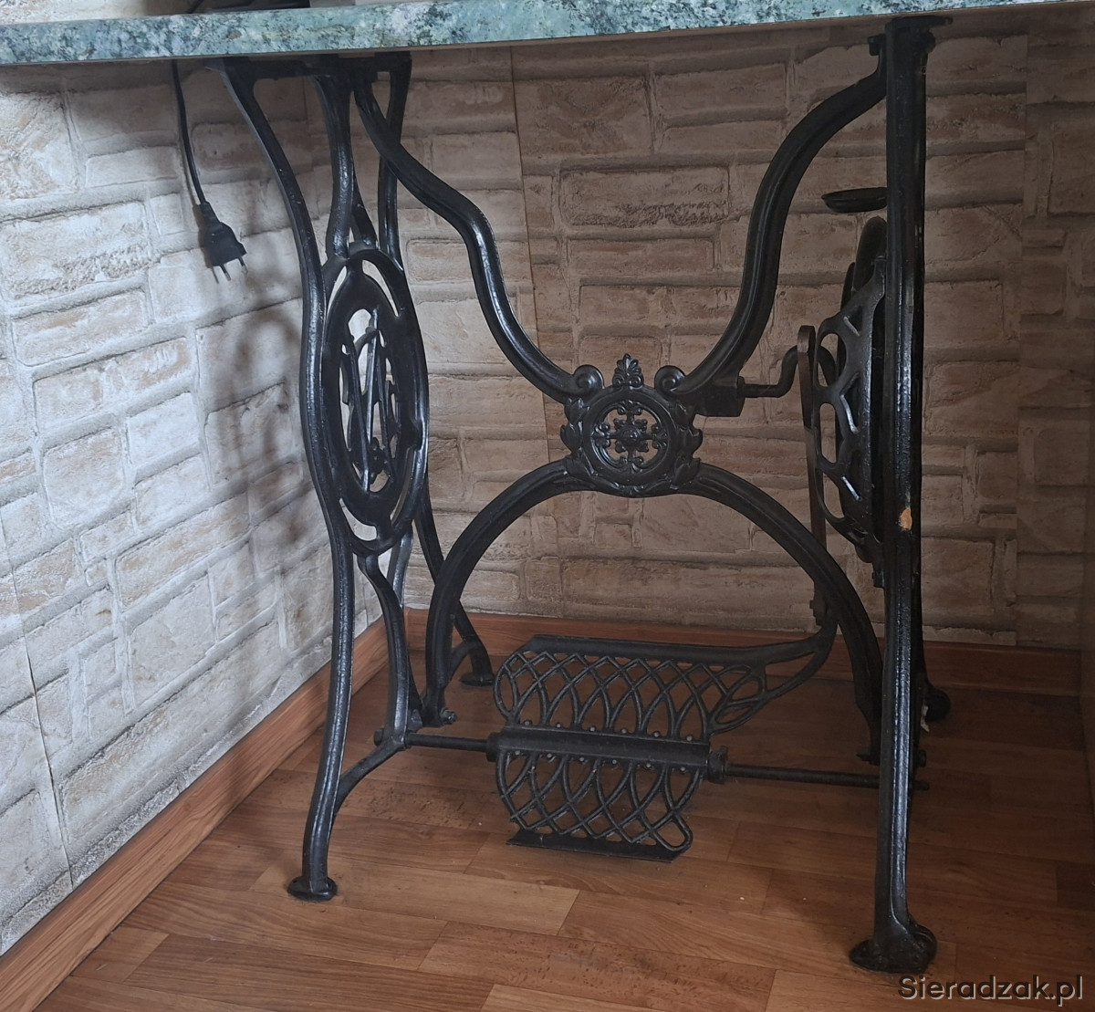 Przedmiotem sprzedaży jest stara, żeliwna podstawa od maszyny do szycia SINGER. Bardzo ładny, zdobiony wzór. Stan - jak na zdjęciach, do odświeżenia. Żeliwo całe, bez pęknięć. Po dorobieniu blatu może pełnić funkcję jako np. stolik.