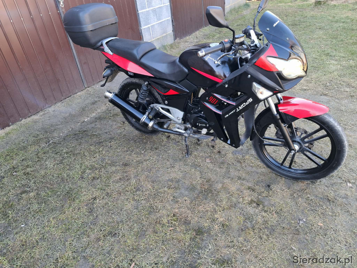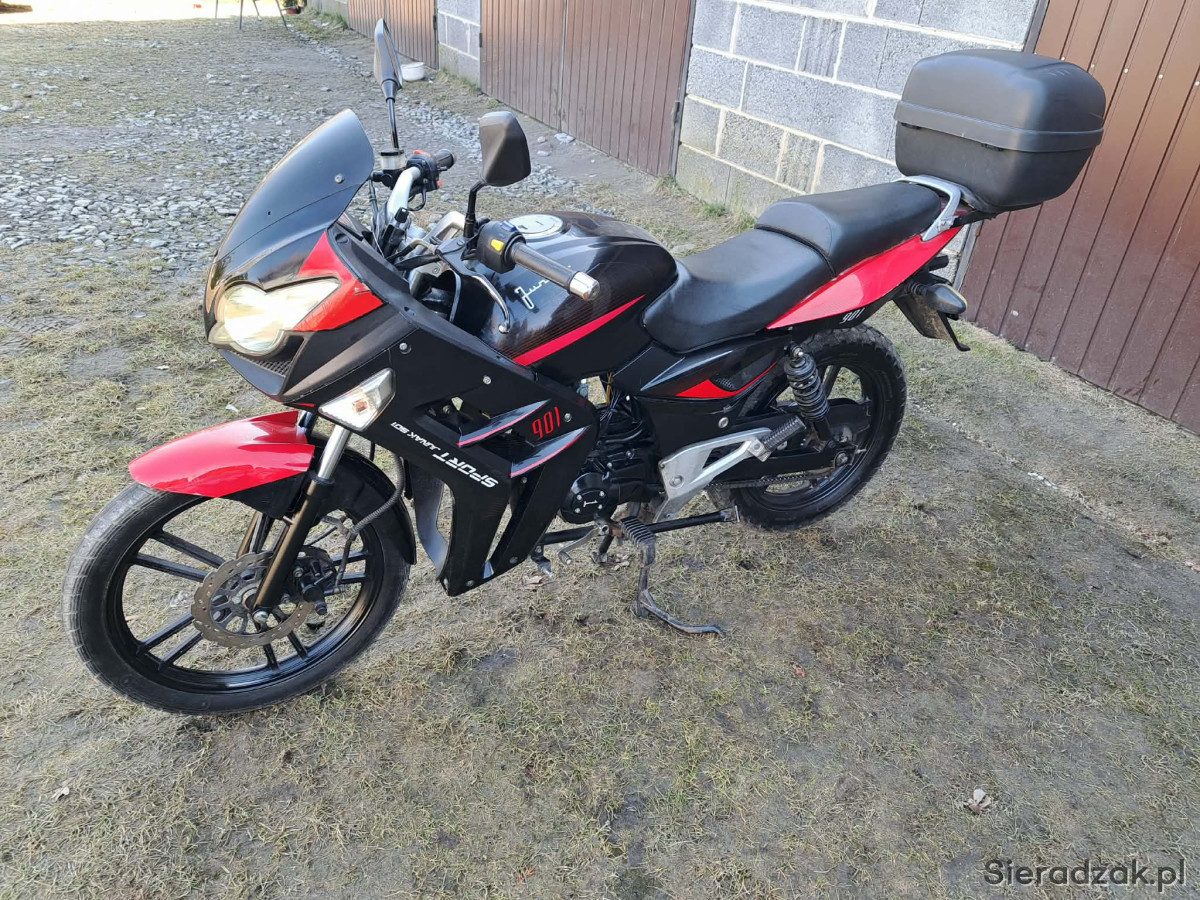 Sprzedam motorower marki Junak 901 SPORT z 2014 roku zarejestrowany na 50 cm³ i zmiana silnika na 110 cm³, przebieg 27.770 km, ubezpieczenie do 2026-07-20, przegląd do 2026-09-10. Motor pali z kopki i kluczyka. Motor ogólnie jest w dobrym stanie, delikatne pęknięcia na dole owiewki. Powodem sprzedaży jest przesiadka na większą pojemność.