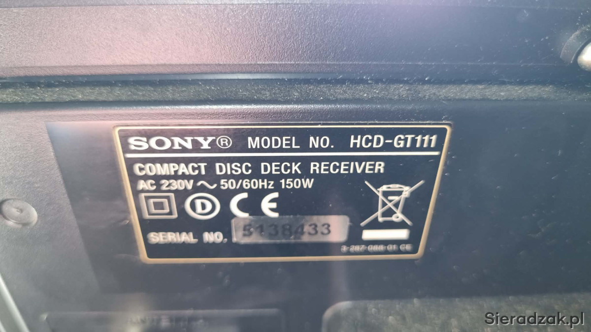 Wieża Hi-Fi Sony MHC-GT111 CD MP3 USB Tape Radio Z RDS 2x100Watt Equalizer efekty.