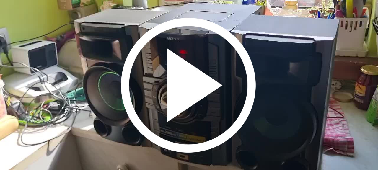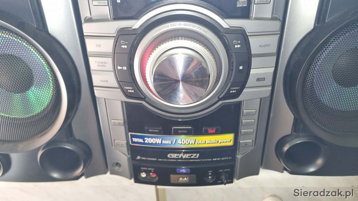 Wieża sprawna w stanie jak na foto. brak pilota w komplecie - można dokupić. Można podłączyć adapter bluetooth. Wieża gra bardzo mocno. Odtwarza płyty CD kasety i radio. Polecam.