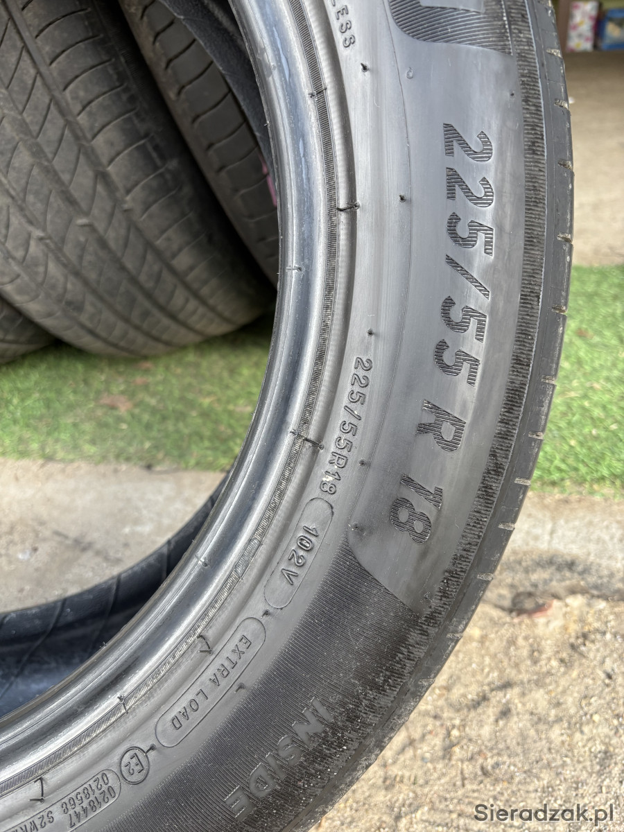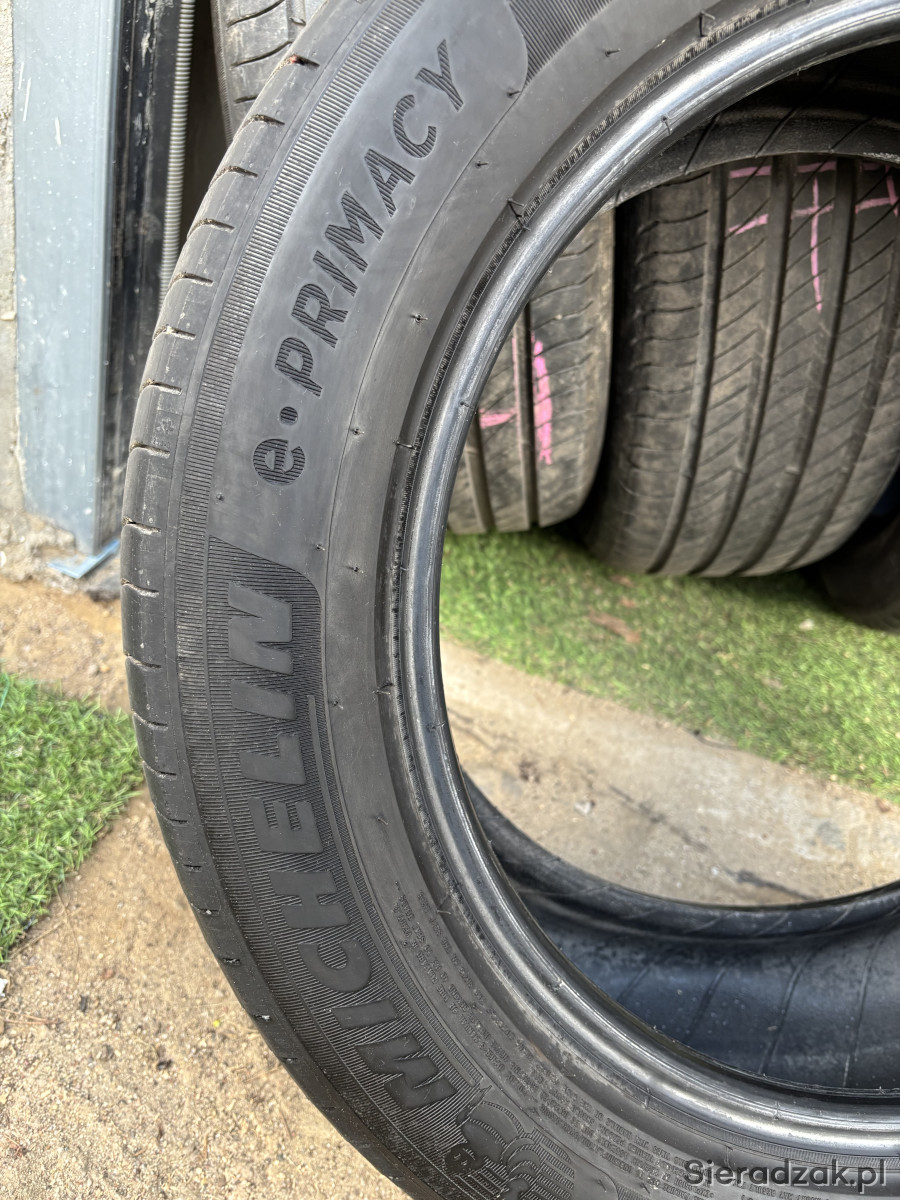 Sprzedam komplet opon letnich Michelin e.Primacy w rozmiarze 225/55 R18. Opony w bardzo dobrym stanie, równomiernie zużyte, bez uszkodzeń i napraw. Bieżnik zmierzony suwmiarką wynosi 6 mm na każdej oponie. Widoczne jeszcze fabryczne wąsy.