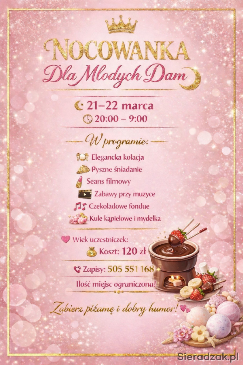 Zapraszamy młode damy w wieku 7–12 lat na wyjątkową, stylową noc pełną atrakcji!
