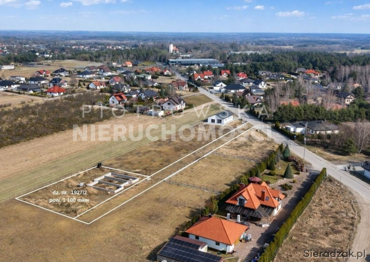 Otoczenie nieruchomości stanowi nowa i rozwijająca się zabudowa jednorodzinna, co tworzy bardzo dobre warunki do budowy domu dla rodziny. Lokalizacja łączy w sobie spokój podmiejskiego życia z wygodnym dostępem do infrastruktury codziennej. W niedużej odległości znajdują się szkoła, sklep, kościół oraz przystanek, a dojazd do Sieradza jest szybki i wygodny.