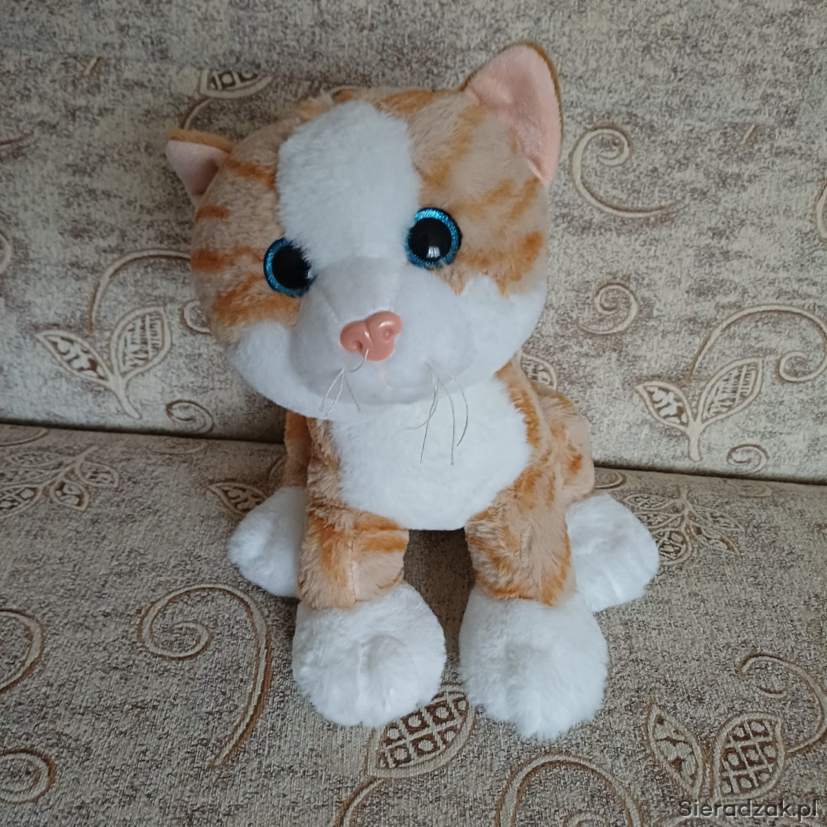 Kotek pluszowy w nowym stanie, który wydaje dźwięki miauczące - naciskając na brzuszek.