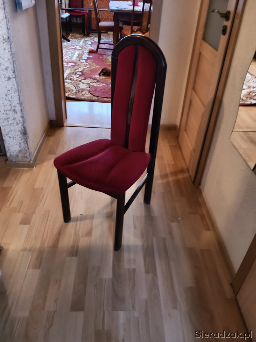 Oddam za darmo 6 sztuk krzeseł pokojowych wyściełanych w kolorze bordowym, nogi drewno lakierowane w kolorze brąz, mocne, wygodne w pełni sprawne, czyste, nie dziurawe. Stan dobry z całą pewnością jeszcze posłużą potrzebującej osobie.