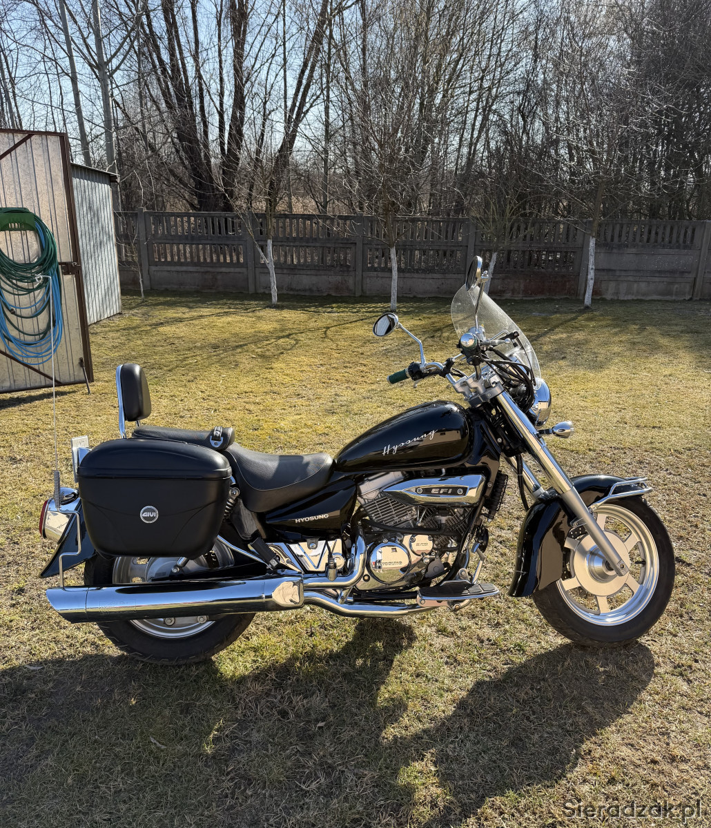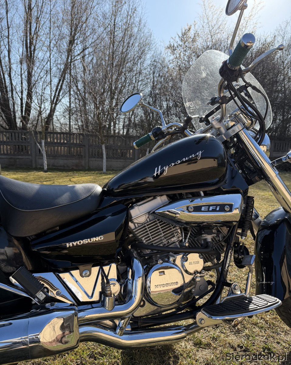 Na sprzedaż motocykl HYOSUNG na wtrysku o pojemności 250 cm3, rok 2010, przebieg 11080. W bardzo dobrym stanie, zadbany i gotowy do jazdy. Klasyczny cruiser z wygodną pozycją za kierownicą.
