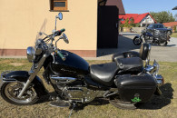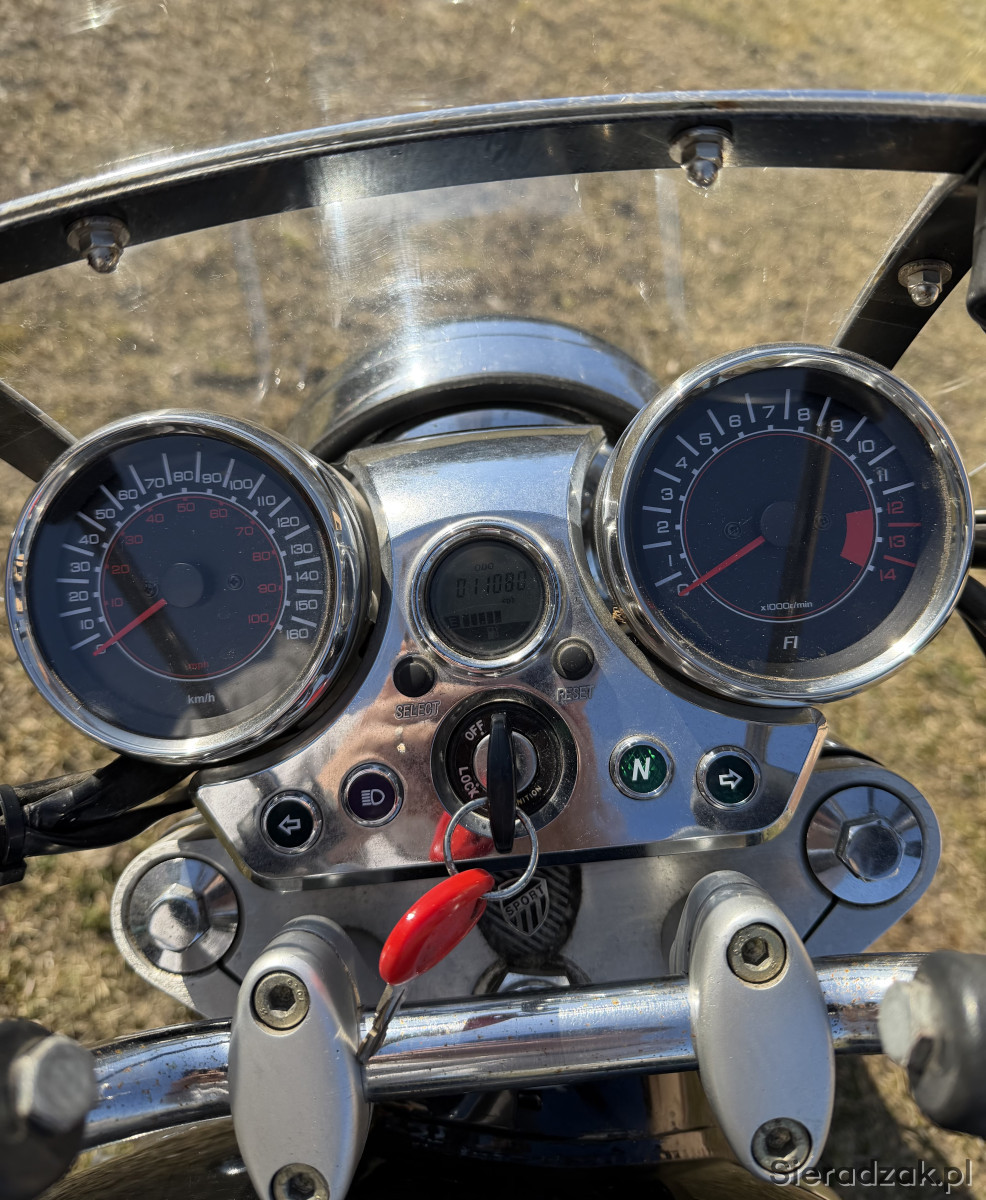 Motocykl posiada szybę turystyczną oraz kufer, co zwiększa komfort jazdy i pozwala zabrać bagaż na wyjazdy. Jak widać na zdjęciach posiada alufelgi. Silnik pracuje równo, motocykl jest ekonomiczny i łatwy w prowadzeniu. Dźwięk silnika mogę wysłać sms-em. W razie pytań proszę dzwonić.