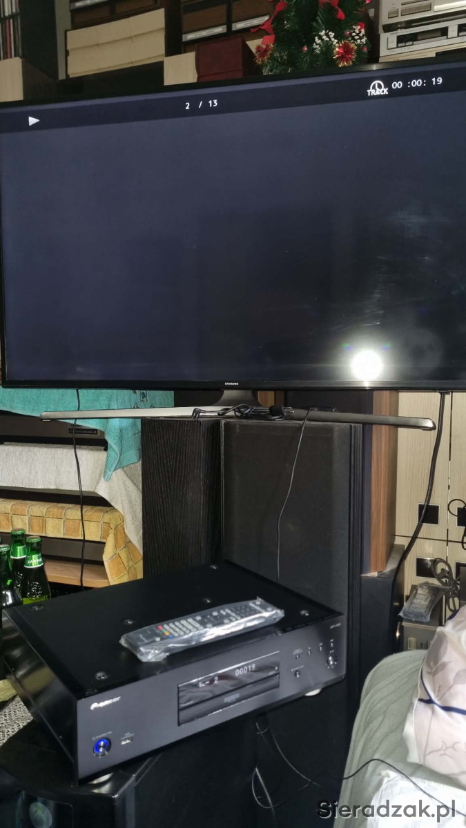 Stan jak na foto. Odtwarzacz sprawny służył głownie jako transport CD. W sumie pierwszy raz podpięty do TV. W komplecie kabel zasilający i podświetlany pilot zdalnego sterowania. Brak oryginalnego kartonu. Polecam.