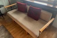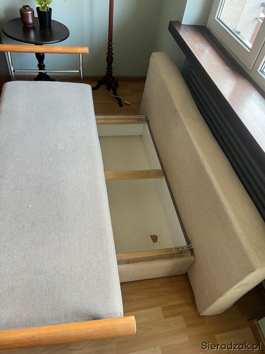 Kanapa w bardzo dobrym stanie, rozkładana i z miejscem na schowanie pościeli.