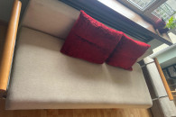 Wymiary : szerokość 1,95 m, głębokość 0,75 m, wysokość oparcia 0,30m, szerokość po rozłożeniu 1,50m
