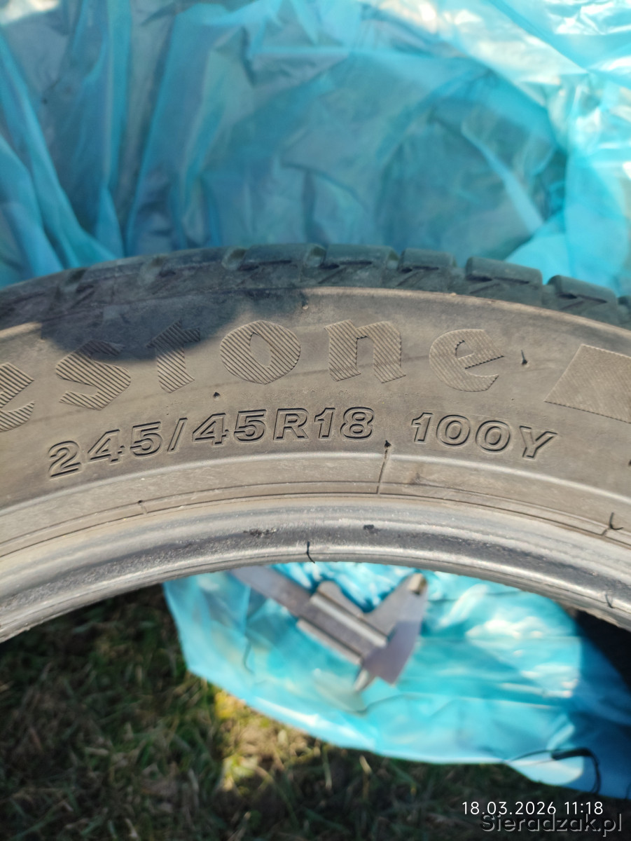 Sprzedam 2 opony Firestone 245/45/18, wysokość bieżnika ponad 6mm, data produkcji: końcówka 2023roku. Nie naprawiane. Cena za 2 sztuki.