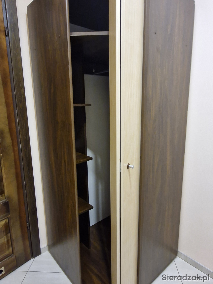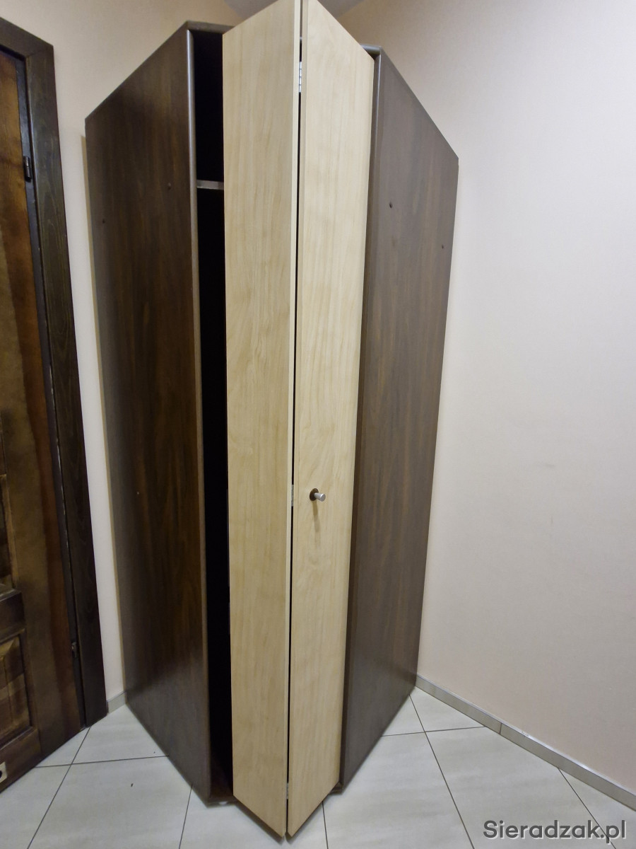 Witam. Do sprzedania szafa narożna. Głębokość 80cm, wysokość 198cm. Stan bardzo dobry, w środku drążek na wieszaki, z lewej strony trzy półki, na górze szafy dodatkowa półka. Stan bardzo dobry, zapraszam.
