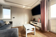 • Salon z wyjściem na balkon, na podłodze panele, ściany w gładzi gipsowej, pomalowane;