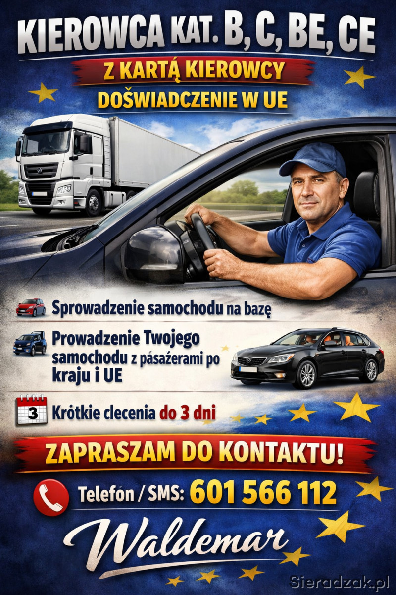 Kierowca kat. B, C, BE, CE z kartą kierowcy i wieloletnim doświadczeniem w UE przyjmie zlecenia typu: