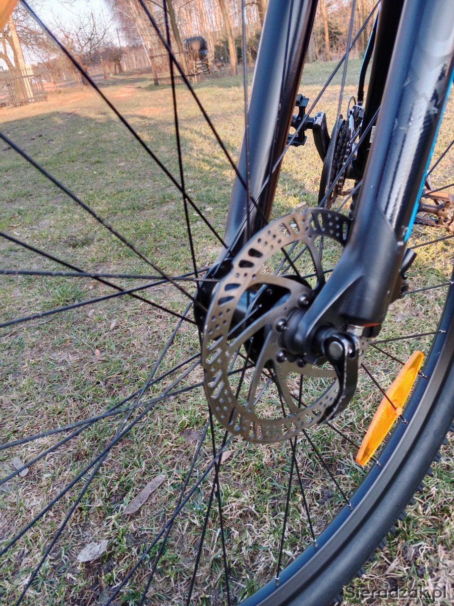 Rower posiada normalne ślady użytkowania. Techniczne wszystko działa płynnie: przerzutki precyzyjnie zmieniają biegi,hamulce są mocne,a koła proste. Opony w bardzo dobrym stanie z wyraźnym bieżnikiem.