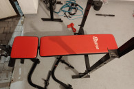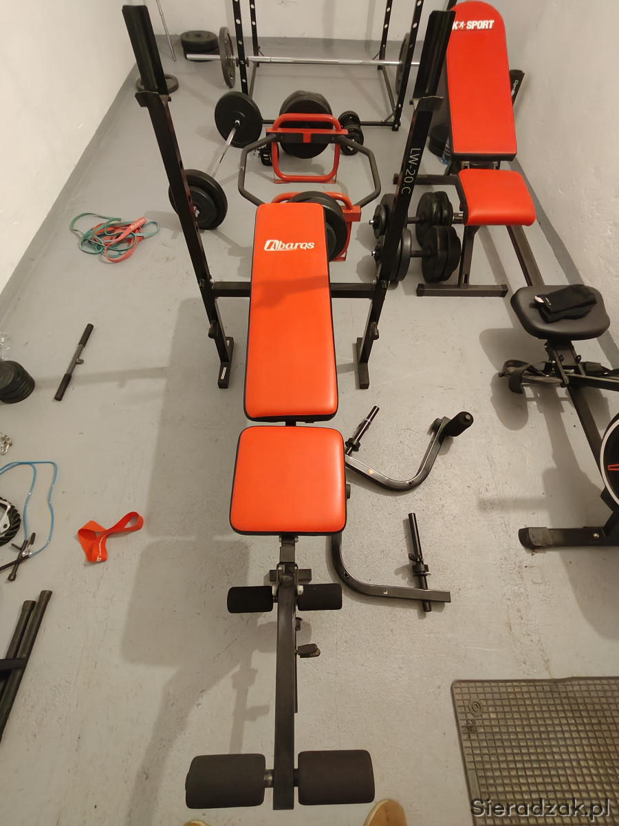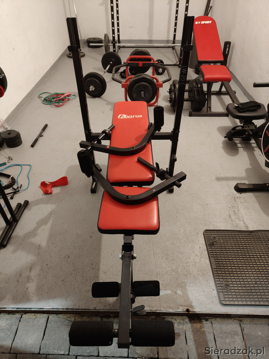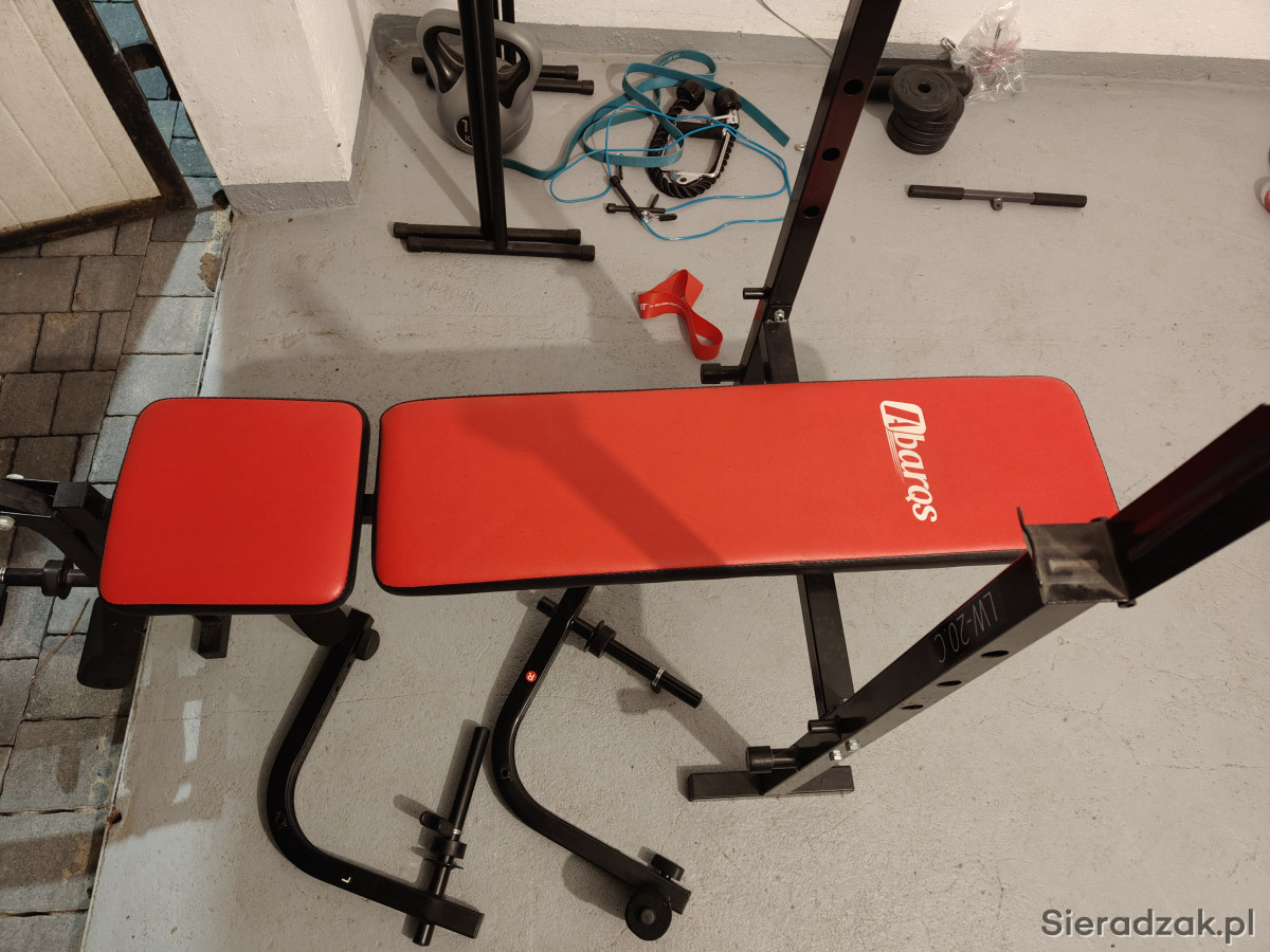 Witam. Sprzedam ławkę pod sztangę Abarqs LW-20c z regulacją kąta pochylenia oparcia w 4 poziomach, z rozpiętkami i prasą na nogi. Na zdjęciach nie widać bolca do regulacji oparcia, ale on jest w zestawie z ławką.